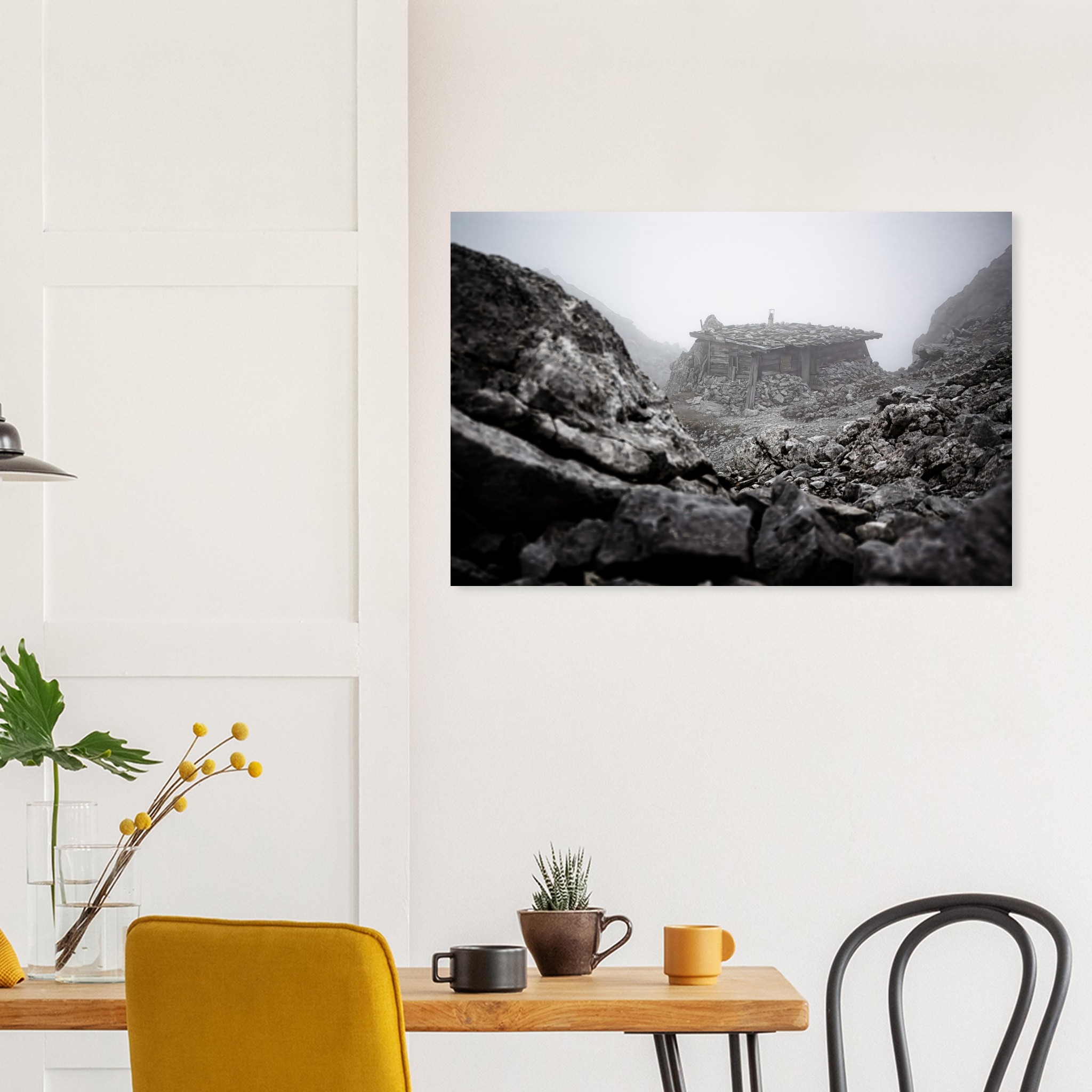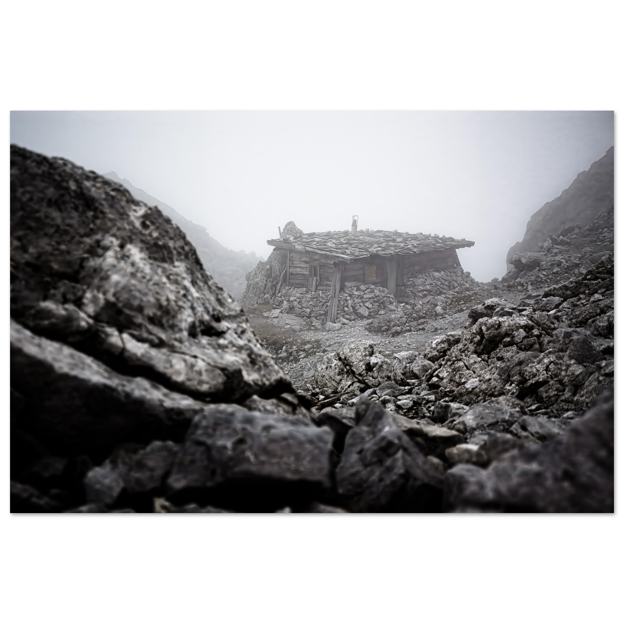 Dieses Foto der alten Geier-Wally-Hütte, nahe der Hafelekar-Bergstation wurde vor deren Erneuerung aufgenommen und vermittelt durch den Nebel eine ganz besondere Stimmung. Kontrastreich und urig, einladend und abweisend zugleich.